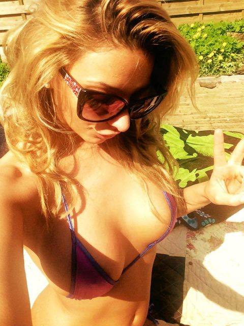 Blonde with big tits in micro bikini